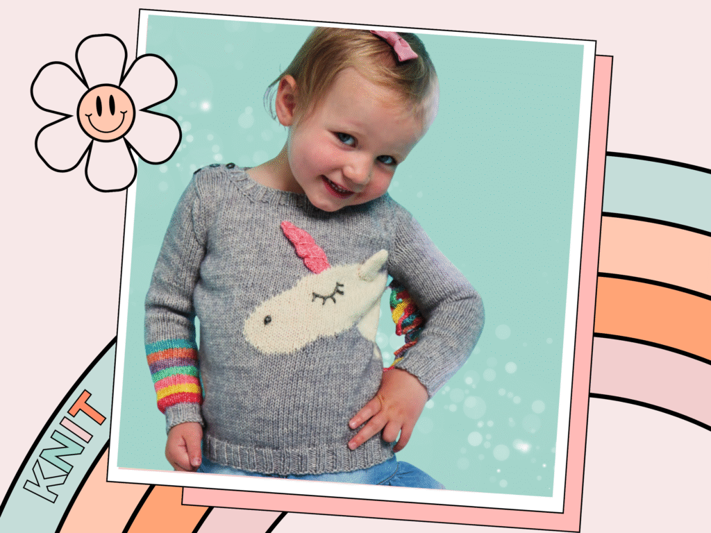 Unicorn & Rainbows KIDS Sweater Pattern, Intarsia Unicorn Jumper – Knitting Pattern